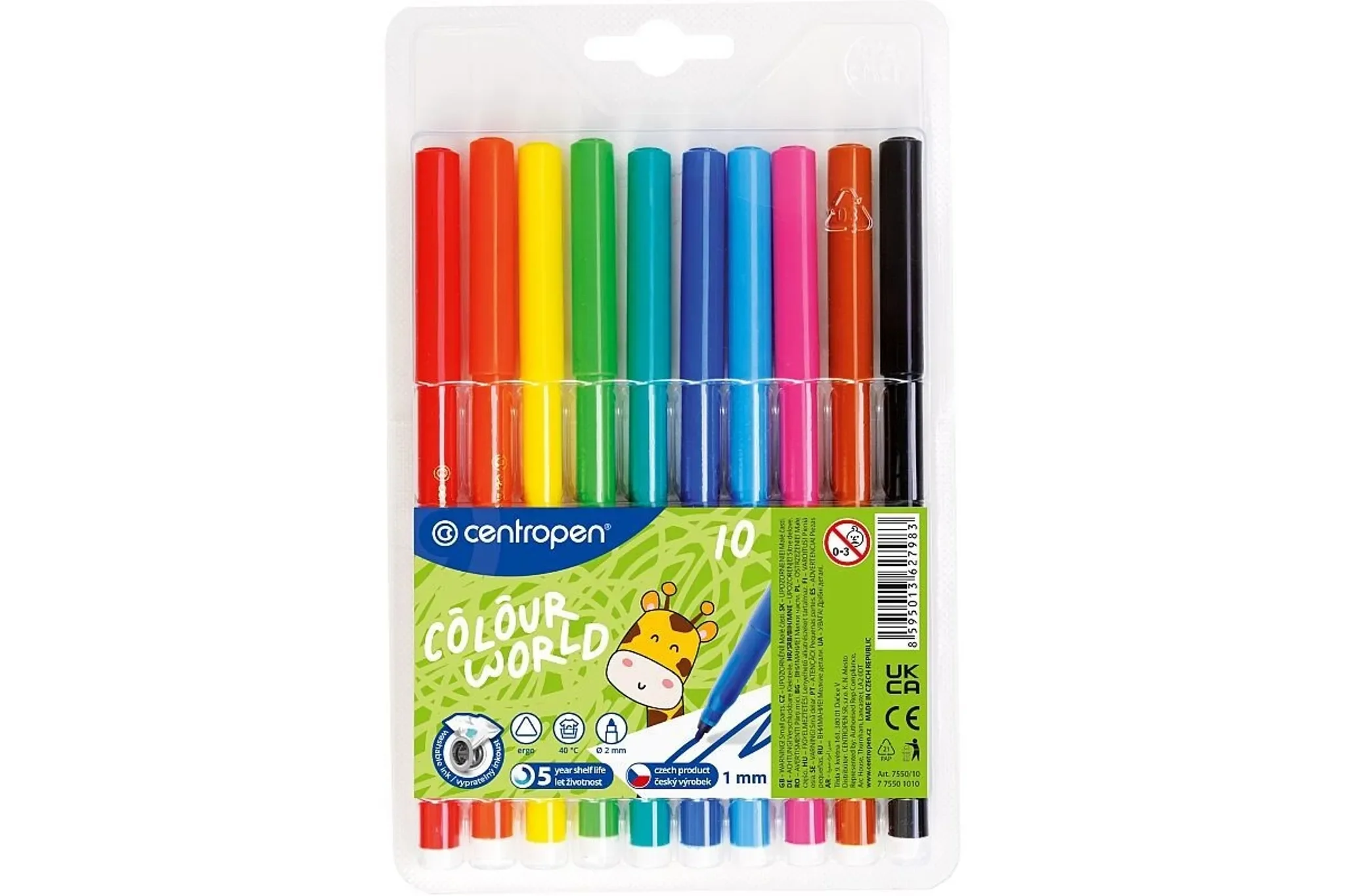 Das Centropen Marker-Set 7550 mit 10 farbigen Markern eignet sich ideal für Schule, kreative Projekte und den Alltag. Die gesundheitlich unbedenkliche, abwaschbare Tinte sorgt für sorgenfreies Malen und Schreiben.