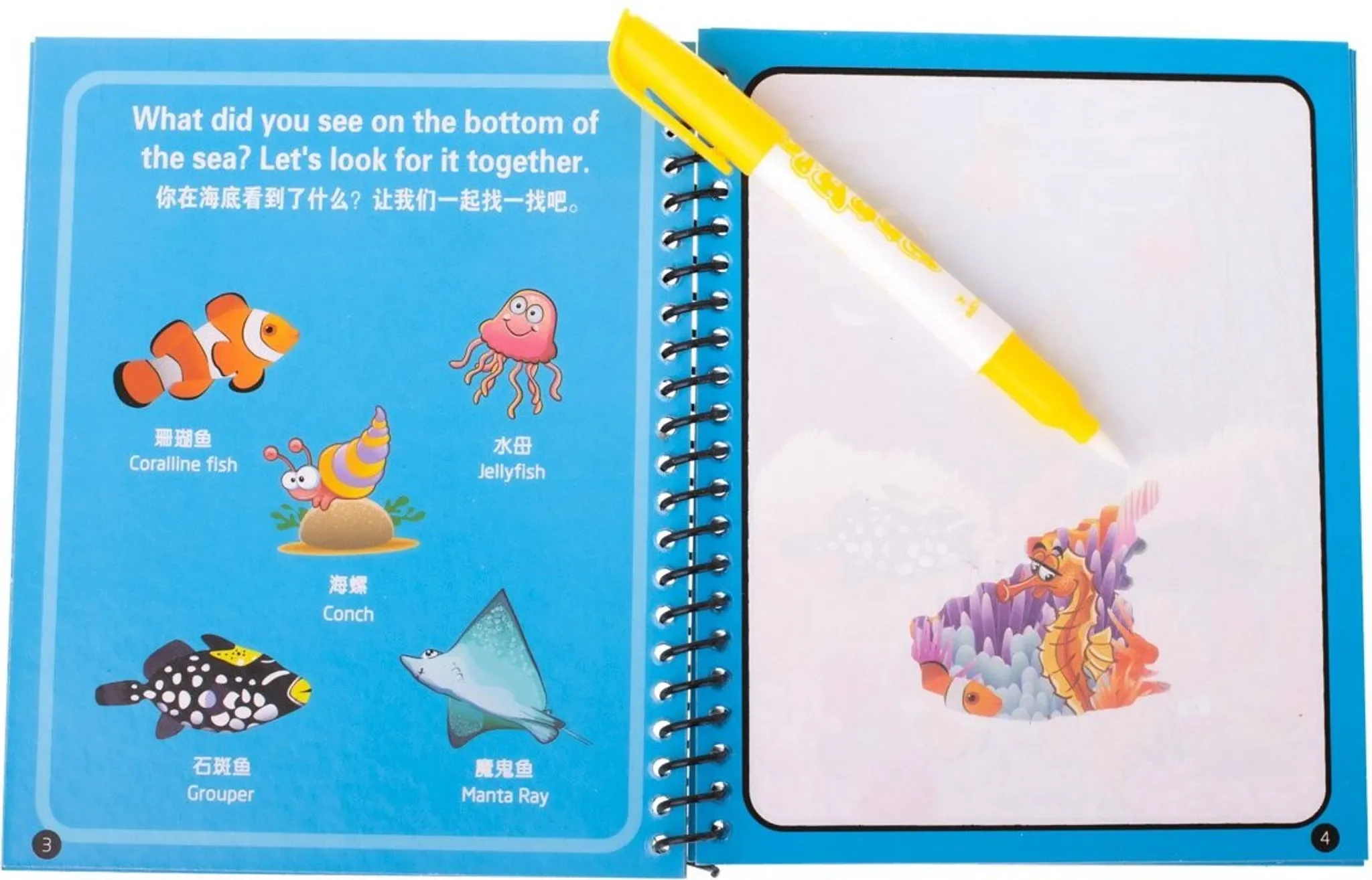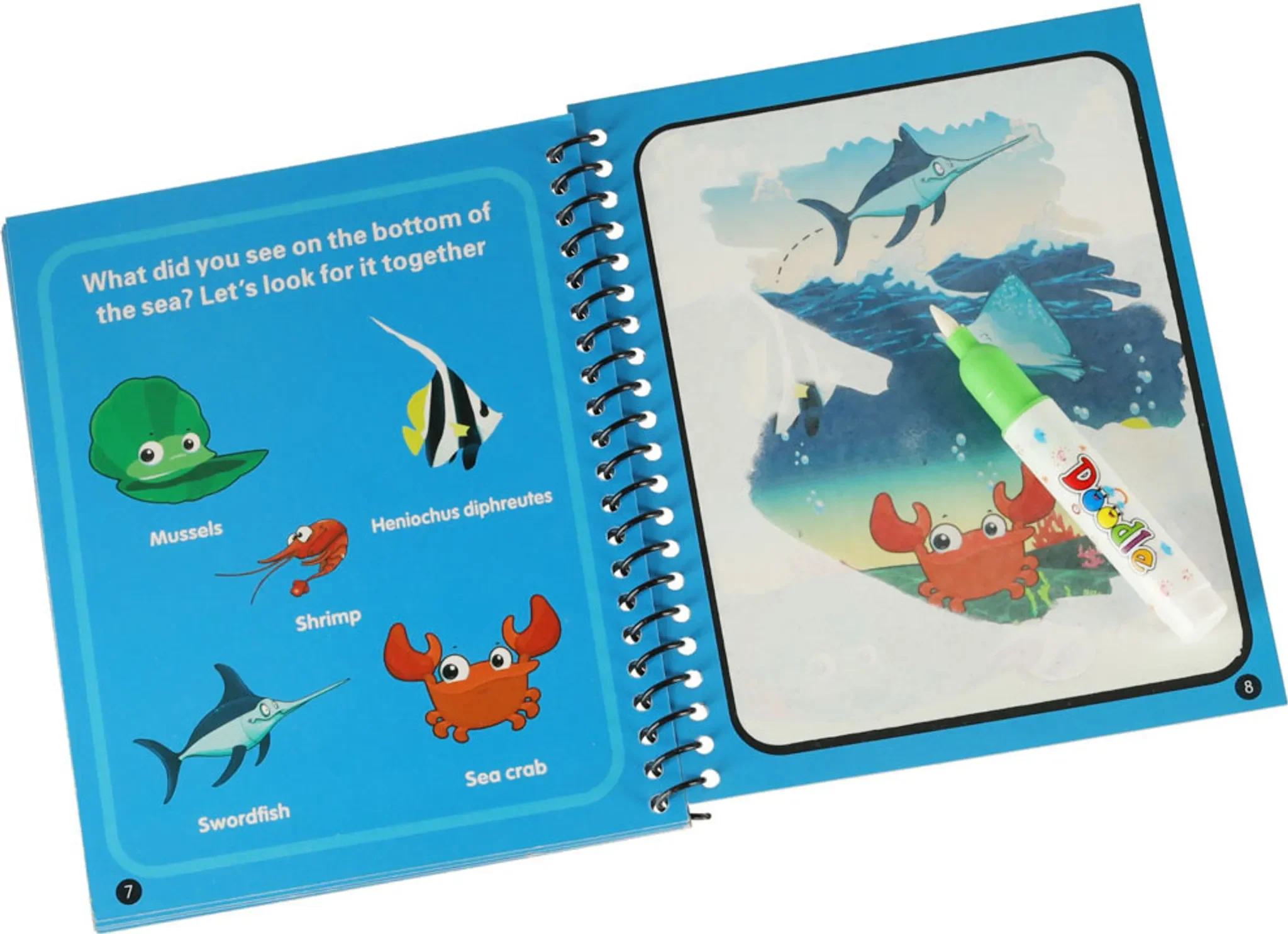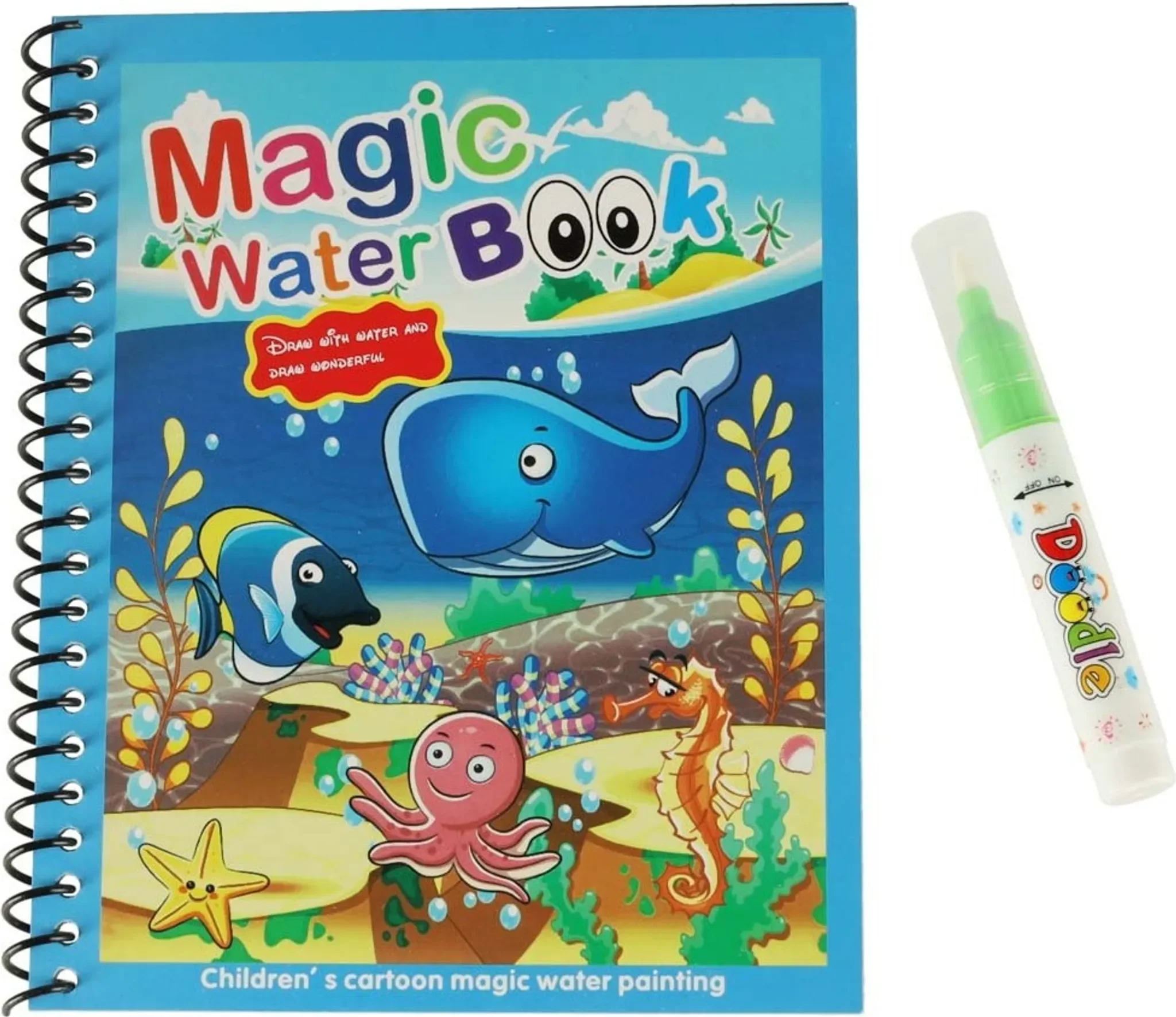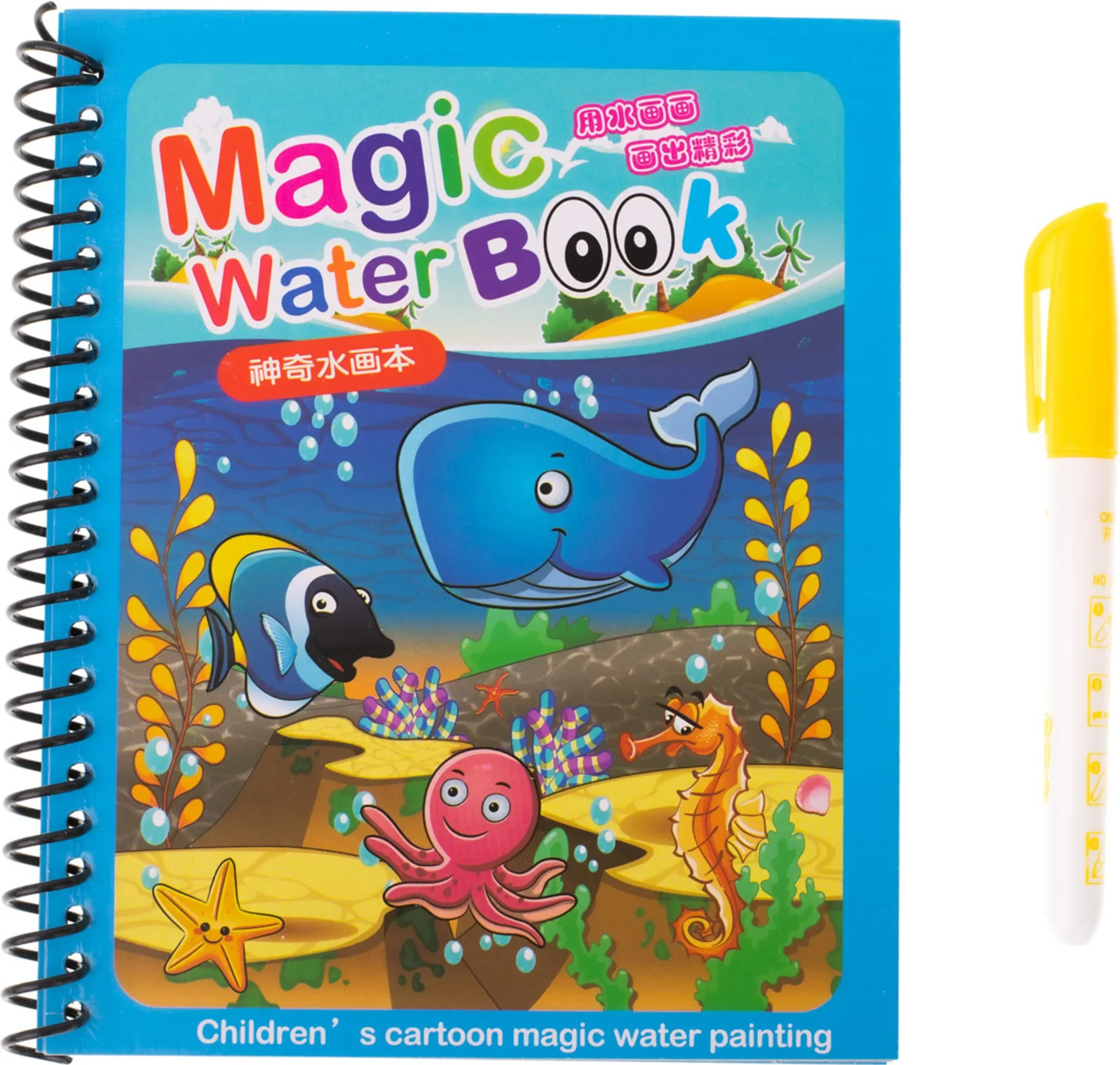 Dieses blaue Wasser-Malbuch mit dem Thema Meerestiere bietet fantasievollen Kreativspaß für Kinder. Zum Ausmalen werden keine Farben, Stifte oder Tinte benötigt – der beiliegende Marker wird einfach mit Wasser gefüllt.