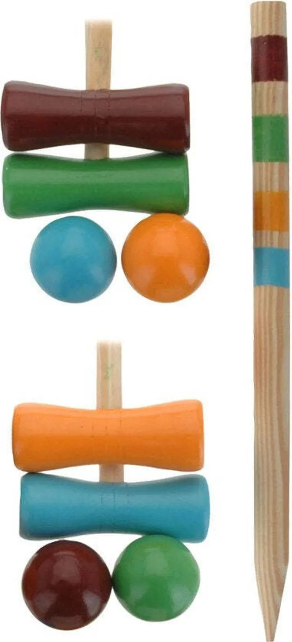 Das Set ist für zwei bis vier Spieler ausgelegt und fördert Geschicklichkeit, Konzentration sowie taktisches Denken. Dank der robusten Holzausführung eignet sich das Krocketspiel ideal für den Einsatz im Freien und sorgt für langanhaltenden Spielspaß bei Kindern und Erwachsenen.