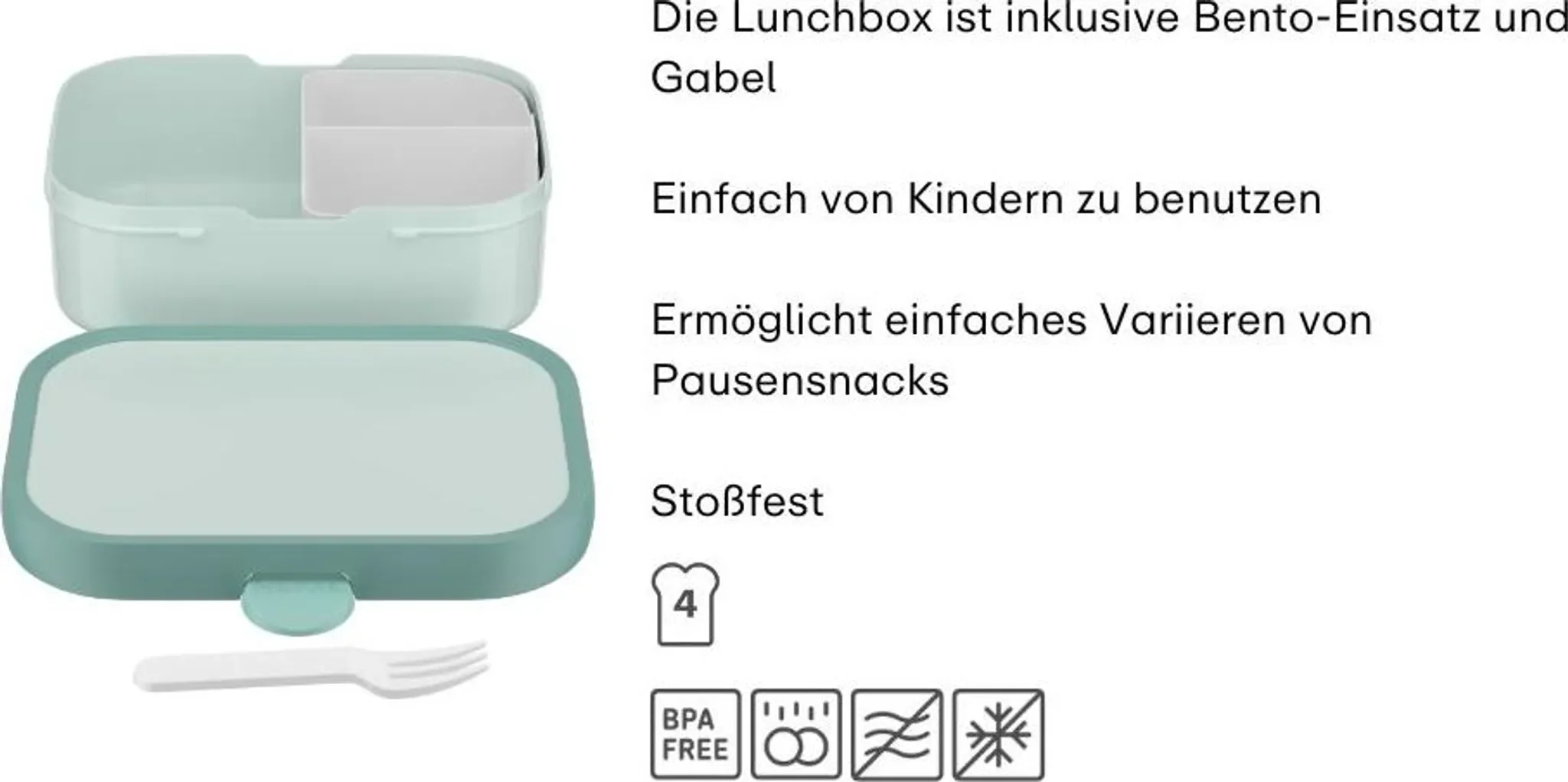 | Produkttyp | Kinder-Brotdose mit Bento-Einsatz |