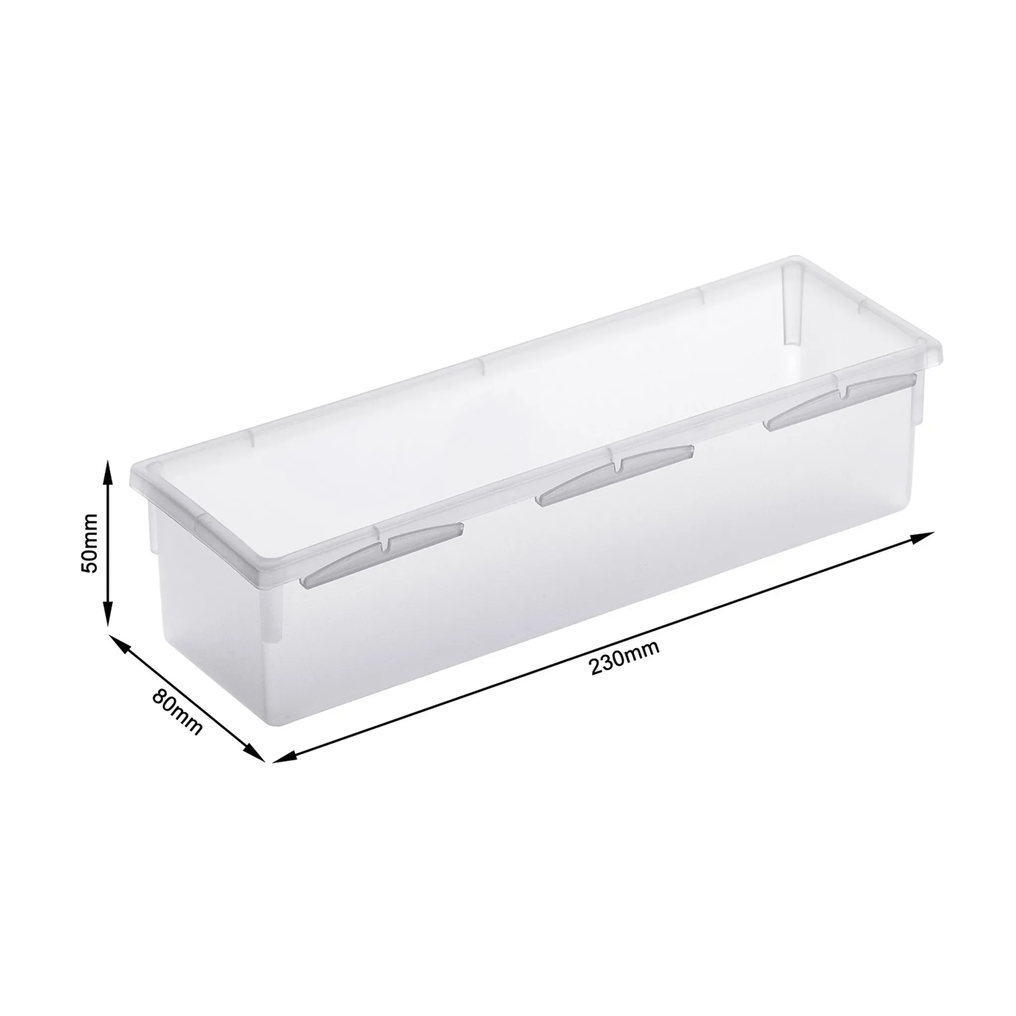 Dank integrierter Verbindungsraster können mehrere Organizer lückenlos kombiniert werden, sodass beim Öffnen und Schließen der Schublade nichts verrutscht. Die transparente Ausführung fügt sich harmonisch in jedes Einrichtungskonzept ein und ermöglicht jederzeit den schnellen Überblick.