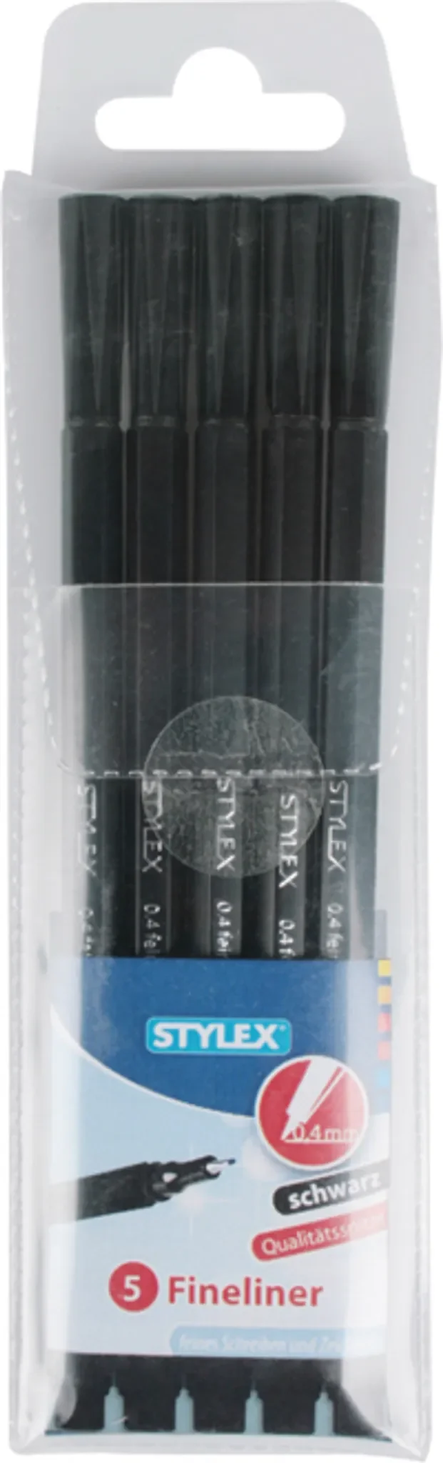 Stylex Fineliner – 0,4 mm, schwarz, 5 Stück im Etui