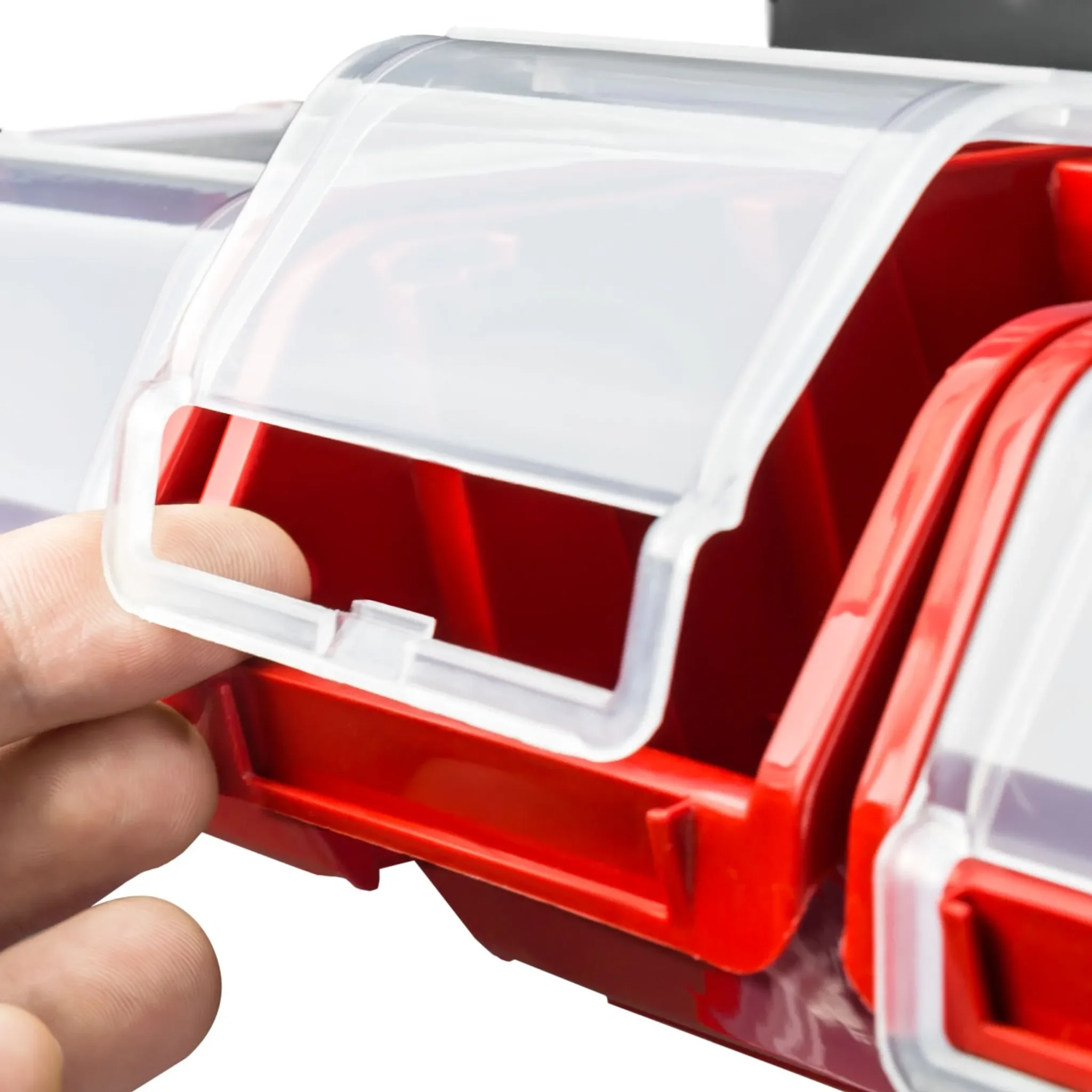 botle Stapelbox aus Kunststoff – rot mit transparentem Deckel